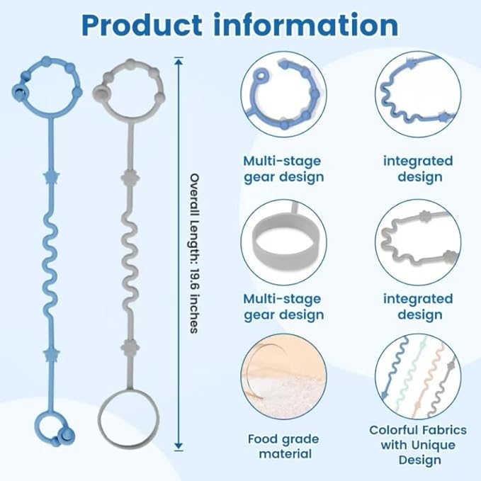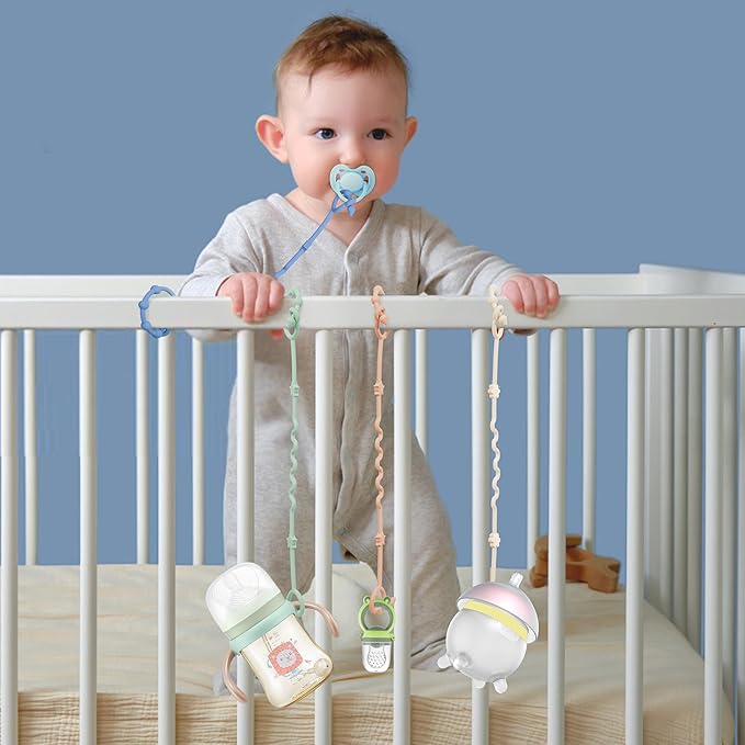 • Scope of Use: Baby toy straps can be used for strollers, baby high chairs, pacifier clips, teethers, car seat toys, baby sucking toys, and baby cribs. They can be taken out to play at any time, whether the baby is eating, crying, bathing, or traveling. Say goodbye to dropping and searching for misplaced baby essentials.