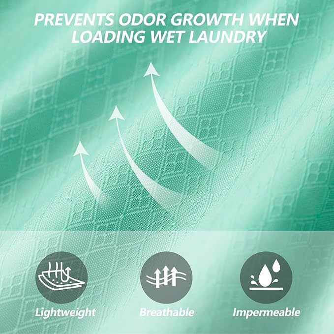 • [Water-Repellent/Lightweight/Breathable Nylon]: Made of washable and thin yet strong nylon, resists splashes from damp swimwear or pop-colored gym clothes.The material is both lightweight and breathable, preventing odors and keeping your laundry bag fresh.