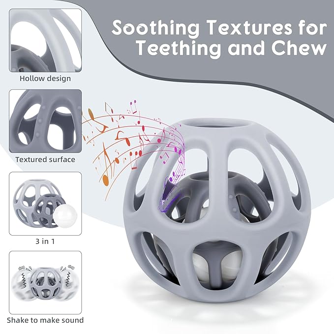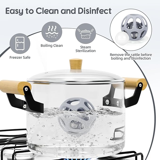 • 【Easy to Clean】We understand that parents need convenient solutions, which is why our silicone baby toys are incredibly easy to clean. Simply rinse them under warm water or toss them in the dishwasher (top rack) for a thorough sanitizing(excluding the rattle ball). They're always ready for the next playtime adventure!