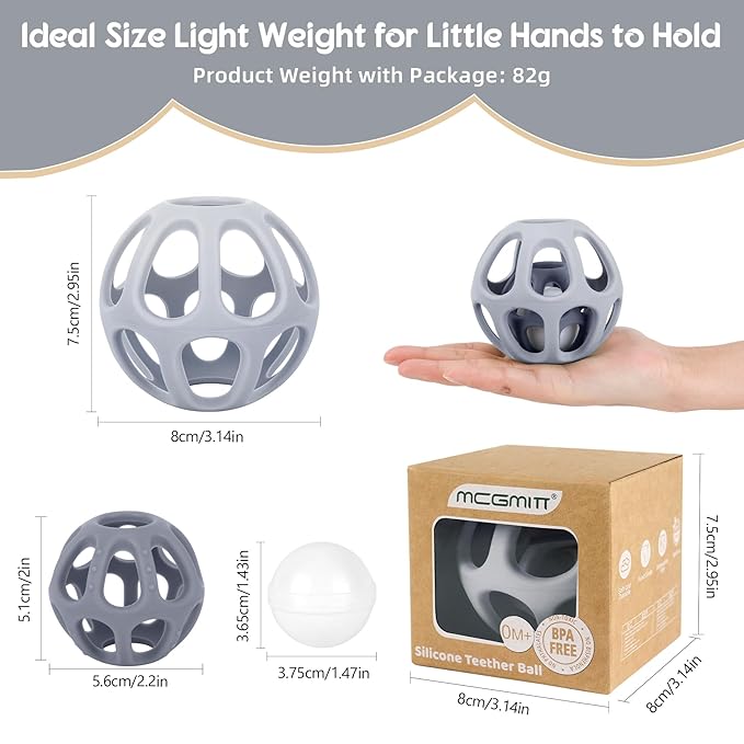MCGMITT Baby Rattle Teething Toy, Easy Grasp Silicone Infant Ball, BPA Free Non-Toxic Soft Baby Sensory Ball Bath Toy, Motor Skills Toy, Montessori Early Educational Toy, Gift for Age Newborn and Up
