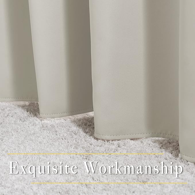 • Amazing Material: Super heavy and soft Blackout Curtain Panels are very upmarket. Besides, 85%-104% light blocking, thermal insulated, soundproof, and energy-efficient. Thread trimmed and wrinkle-free, both sides are the same color.