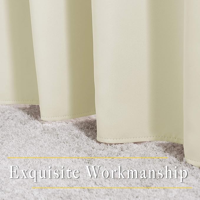 • Amazing Material: Super heavy and soft Blackout Curtain Panels are very upmarket. Besides, 85%-99% light blocking, thermal insulated, soundproof, and energy-efficient. Thread trimmed and wrinkle-free, both sides are the same color.