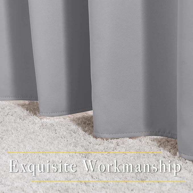 • Amazing Material: Super heavy and soft Blackout Curtain Panels are very upmarket. Besides, 85%-99% light blocking, thermal insulated, soundproof, and energy-efficient. Thread trimmed and wrinkle-free, both sides are the same color.