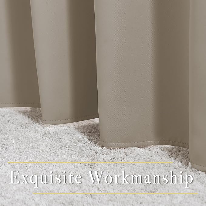 • Amazing Material: Super heavy and soft Blackout Curtain Panels are very upmarket. Besides, 85%-99% light blocking, thermal insulated, soundproof, and energy-efficient. Thread trimmed and wrinkle-free, both sides are the same color.