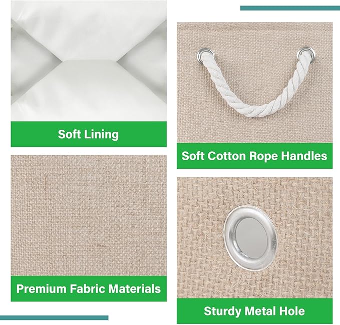 • Cotton Rope Handles & Premium Fabric: Soft handle will give you a very comfortable grip feeling, will not feel strangled hands, more easier to use the linen basket. The canvas storage bins equipped with soft and sturdy handles for moving conveniently. Sturdy soft handles on both sides are convenient to retrieve from shelves. These closet storage baskets are made of durable fabric which is strong and lightweight