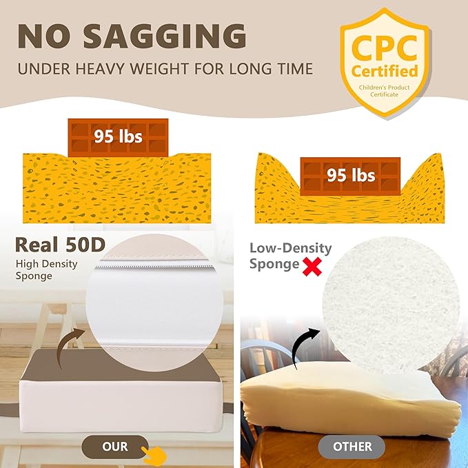 • 【REAL 50D Sponge, ZERO Sagging】The Booster Seat from Sylynvia Brand is of REAL 50D high-density sponge, which ensures softness and comfort while being able to withstand a weight of 80 pounds and will not sag when sitting for a long time, providing excellent support.This means that it has a long service life and your baby can use it from the age of 1 to 8 years old.