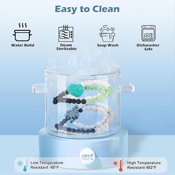• 【Easy to Clean & Durable】Made from high-quality, food-grade silicone, these teething necklaces can be easily rinsed with water or placed in the dishwasher for effortless cleaning, making maintenance quick and simple for parents