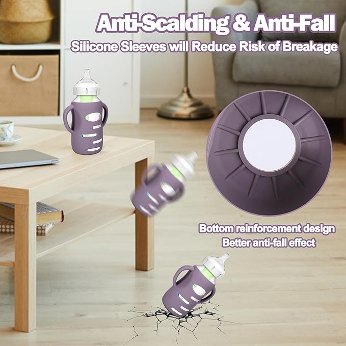 • Unique Designed for Baby Bottles - The silicone sleeves for Dr. Brown's Baby Bottles can against drop down,bumps and scratches. These are a must essential product for using glass baby bottles. They provide a more sturdy protection for glass baby bottle from breaking if dropped, which also unique handle design shape make it easier to grip and hold