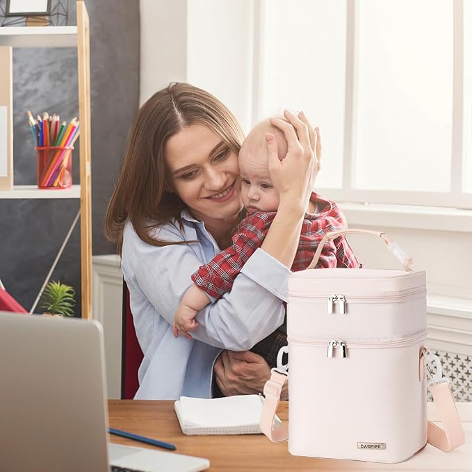 • Convenient Two-Layer Design: With its two-layer design, our breastmilk cooler bag offers maximum versatility. The upper layer is perfect for storing lunch boxes and food, while the lower layer can accommodate up to 6 bottles. Stay organized and keep everything in one place.