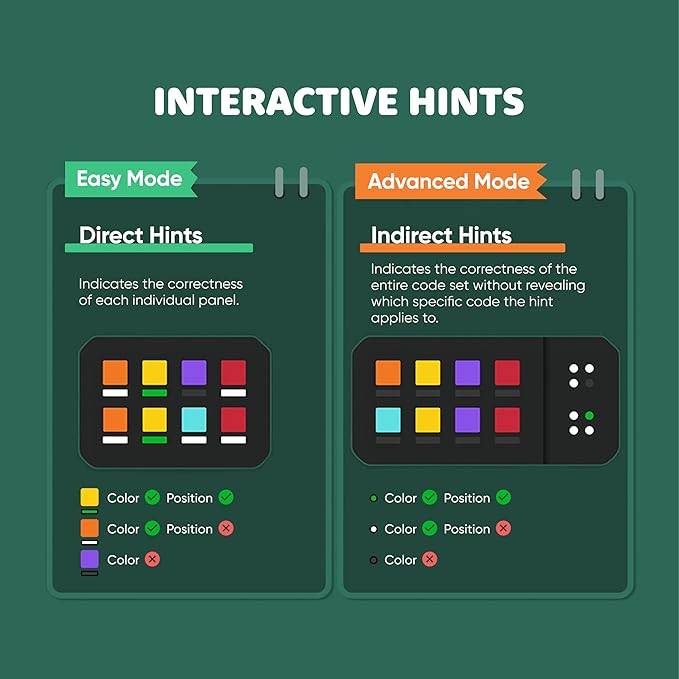 • SOLO AND DUO PLAY MODES: Play alone or switch to Duo Mode to take turns setting secret codes to challenge family or friends. Enhance family bonding time while breaking codes together!