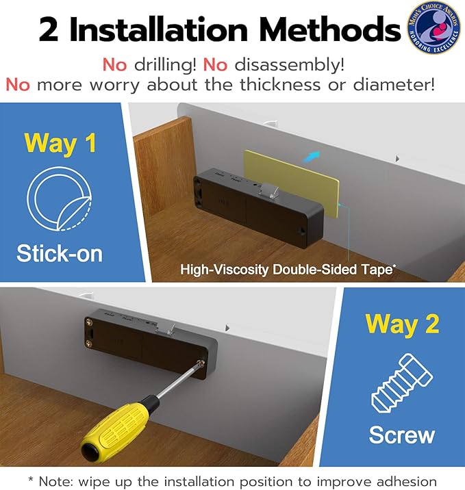 • 🔒【2 Easy Installation Ways】: Straightforward to DIY install easily, supports stick-on and screw installation methods, choose your favorite installation method or both. It is equipped with high-viscosity double-sided tape with firm and stable sticking.