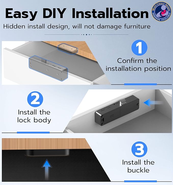 • 🔒【Invisible Installation】: Adopting hidden installation design without drilling and disassembly, completely ignoring the thickness, hole diameter, and other dimensions, can be widely applied to various cabinets and drawers, and will not damage furniture.