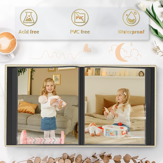 • EXCELLENT CRAFTSMANSHIP:The inner pages of the linen album are made of high-quality PVC material, which is acid-free, moisture-proof and dust-proof. Your photos can be kept for a long time