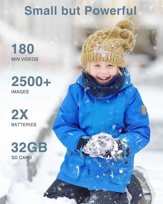 • WARRANTY & PACKAGE LIST - We provide a one-year satisfaction promise, along with a no-hassle refund and replacement policy. Package list: Kid Digital Camera, 32 GB SD Card, Type C Cable, Charger Adapter, 2 Rechargeable Batteries, Lanyard, and Bag.