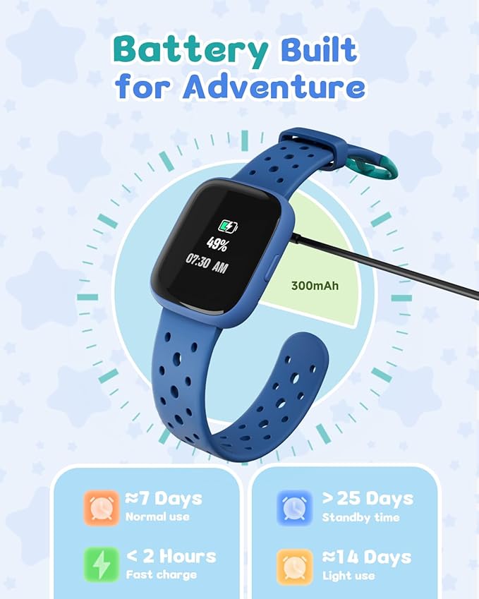 • [Comprehensive Fitness & Health Tracking]: Promote your child’s well-being with real-time heart rate monitoring and advanced sleep tracking. The watch analyzes sleep stages (REM, light, deep) to provide insights into sleep quality. Note: Sleep tracking requires more than 3 hours of sleep and long-term wear for accurate results.