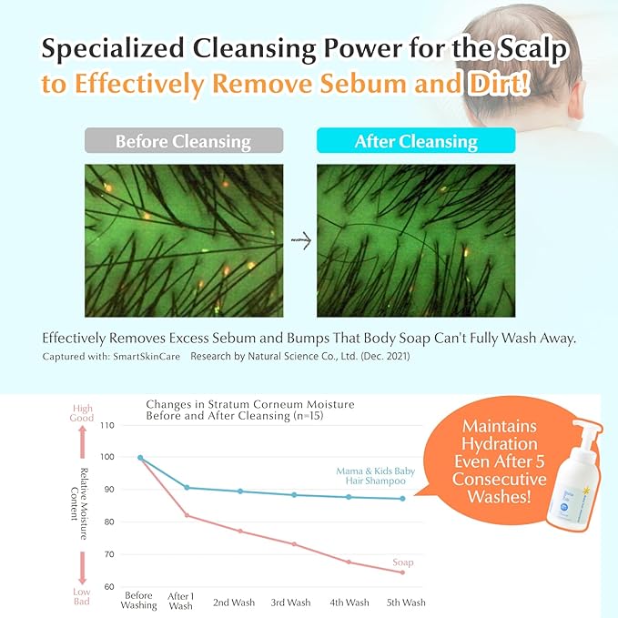 • Fluffy Foam for Easy Use: Dispenses a soft, fluffy foam with just one push, making it easy to wash baby’s scalp and hair with minimal effort and mess.