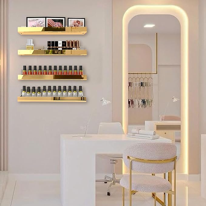 4 Pack 15 Inch Gold Reflective Acrylic Shelves, Gold Foating Shelves, Modern Sunglasses Essential Oil Picture Ledge Display Toy Storage Shelf