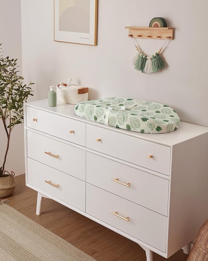 Blissful Diary Muslin Baby Changing Pad with Waterproof Lining Foam, Diaper Changing Table Pad with Cover for Dressers (Monstera, Avocado)