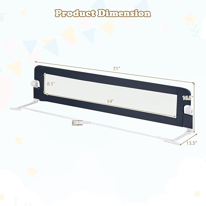 • [ Protect Your Baby's Safety ]: This extra-long bedrail is 71 inches long for added safety. When your kids sleep alone at night, it can provide them with the best protection and safe sleeping environment. It is your kid's safety guard, so you don't have to worry about your baby falling off the bed.