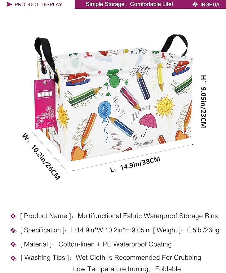 Rectangular Storage Basket Fabric Organizer Bin for Toys,Books,Clothes,Gifts,Pets-Perfect for Home,Office,Nursery,Dorm,Shelf(Rec-colored pencil )