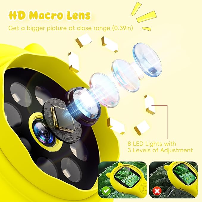 • Digital Microscope for Kids: equipped with 200x magnification and 4x zoom adjustment knob, this microscope provides exceptional clarity, allowing children to take a closer look at spots on ladybugs, bee wings, plant veins, intricate patterns on coins and fibers in tissues, embarking on an exciting journey of microscopic exploration