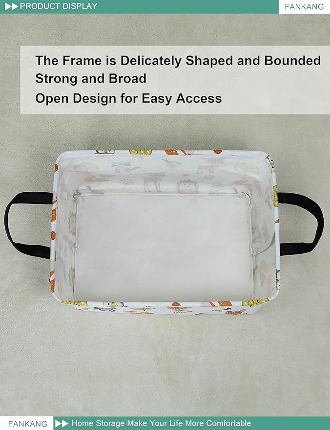 FANKANG Storage Bins, Nursery Hamper Canvas Laundry Basket Foldable with Waterproof PE Coating Large Storage Baskets for Kids Boys and Girls, Office, Bedroom, Clothes,Toys(Rec-deer)