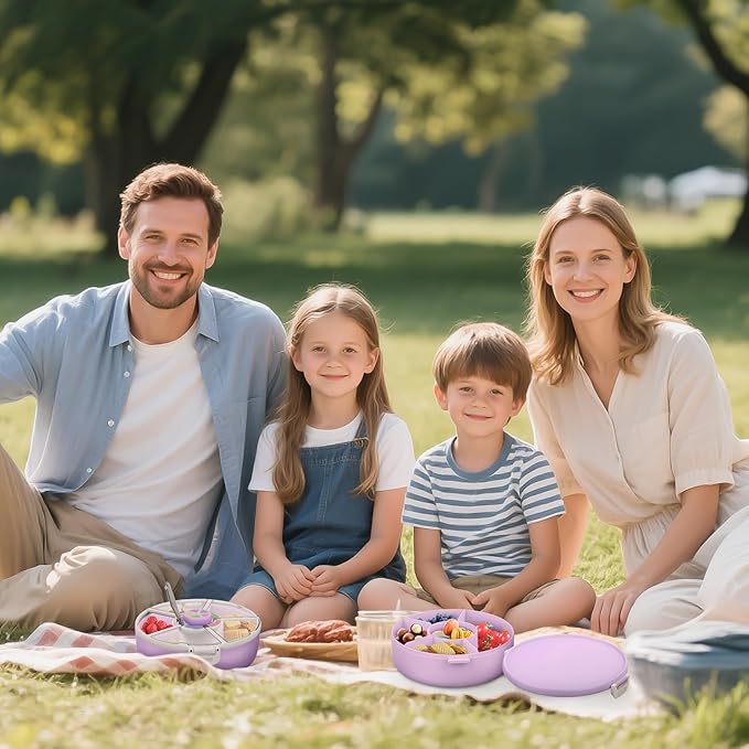 • Keep Snacks Organized — With 5 perfectly sized compartments, this container holds a variety of snacks like fruits, nuts, Cheerios, pretzels, and Goldfish. A removable divider allows extra space for longer or larger items. Keep everything fresh, neat, and ready for any occasion—whether it’s school, travel, or a day at the park.