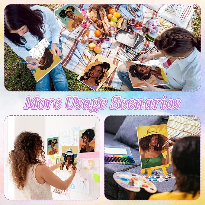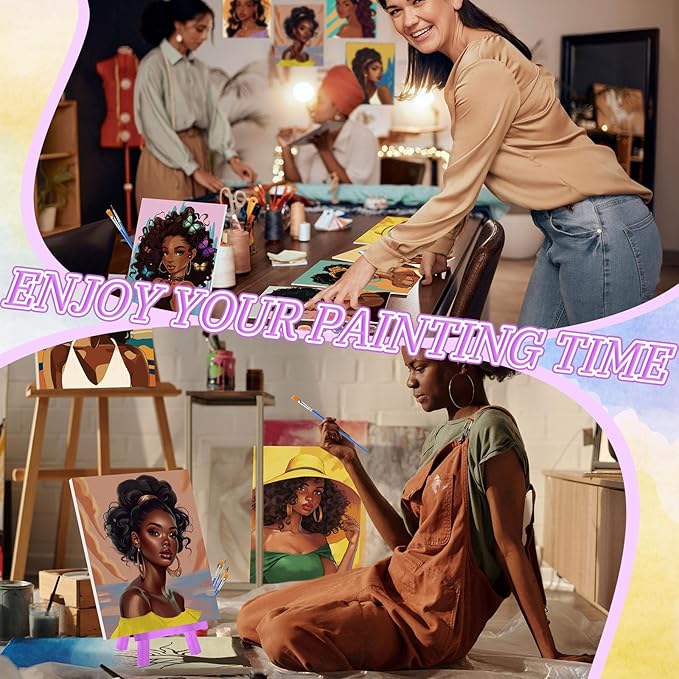 • 10 Pre Printed Canvases: 10 kinds of black women patterns are engraved on the pre drawn board; Include African women and other patterns, the size of: 7 x 5 x 0.1inch/18 x 13 x 0.3cm, cute and easy, you can use the provided paint to color according to your own aesthetics, improve your painting creativity in the process, and also reduce stress and relieve anxiety
