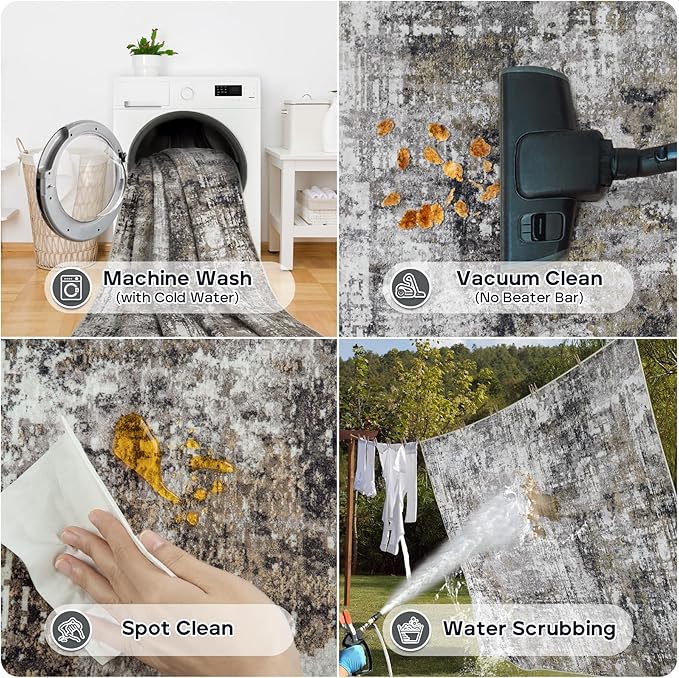 • Easy Maintenance: Keep your space fresh and clean with minimal effort. Our modern 6x9 area rugs are machine washable, spot-cleanable, and vacuum-friendly, making maintenance a breeze. Use a low-power vacuum regularly to remove dust or pet hair for everyday care. Avoid using bleach for best results