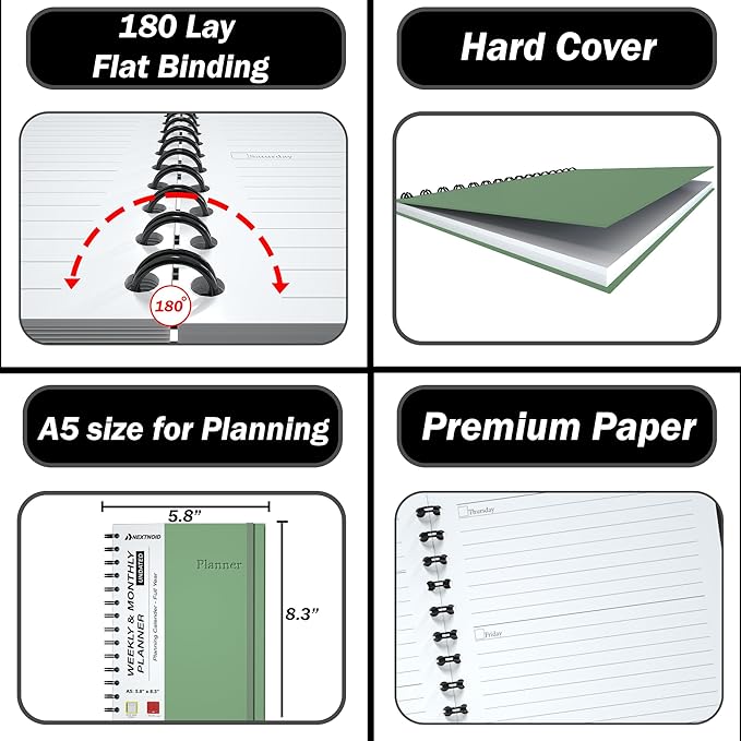• All-in-One Planner Notebook - Designed for real life with both monthly and weekly planner views in one compact A5 planner. Perfect for organizing appointments, tasks, and goal setting in one place.