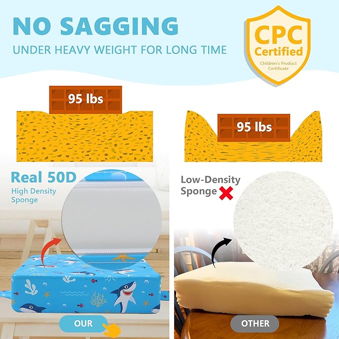 • 【REAL 50D Sponge, ZERO Sagging】The Booster Seat from Sylynvia Brand is of REAL 50D high-density sponge, which ensures softness and comfort while being able to withstand a weight of 80 pounds and will not sag when sitting for a long time, providing excellent support.This means that it has a long service life and your baby can use it from the age of 1 to 8 years old.