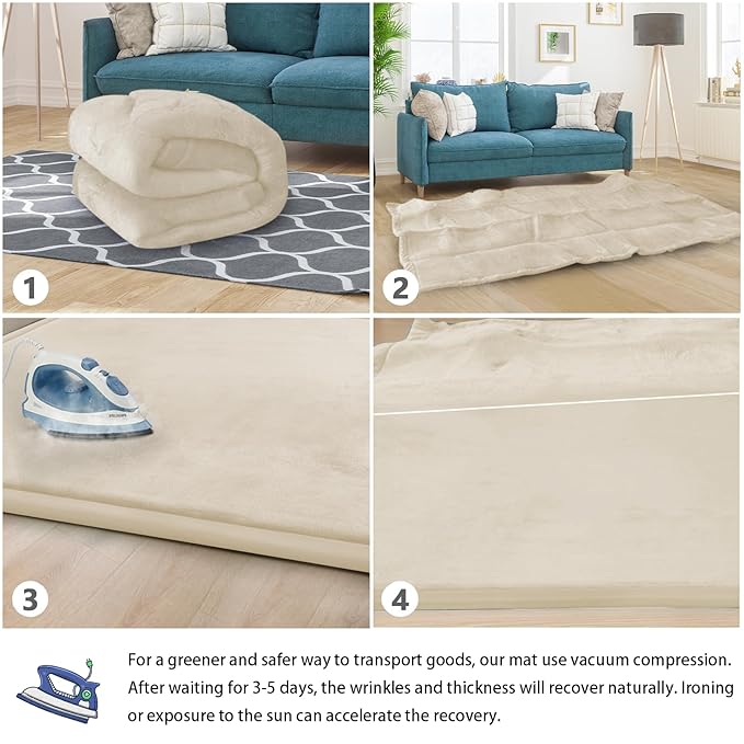 • 🌟HOW TO CARE FOR YOUR MAT:When you open the package,it may be wrinkled,very flat and inelastic.Don't fret - this is normal! As long as it is left for 3-5 days, the mat will naturally regain its thickness and elasticity. we recommend steaming or ironing it to speed up recovery. After you have completed the steaming/ironing, your thick floor padded mat should rebound and be ready to use!