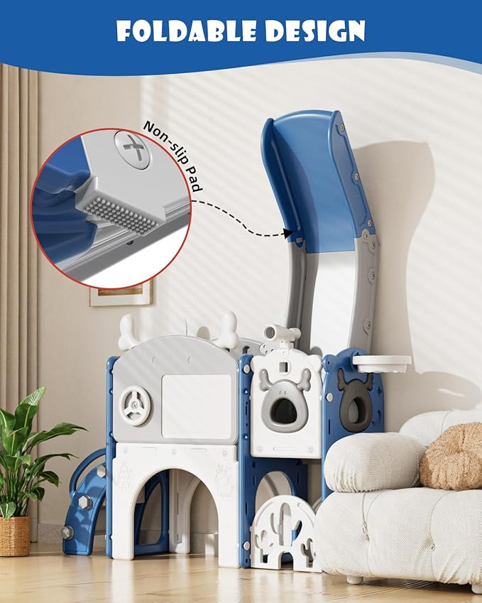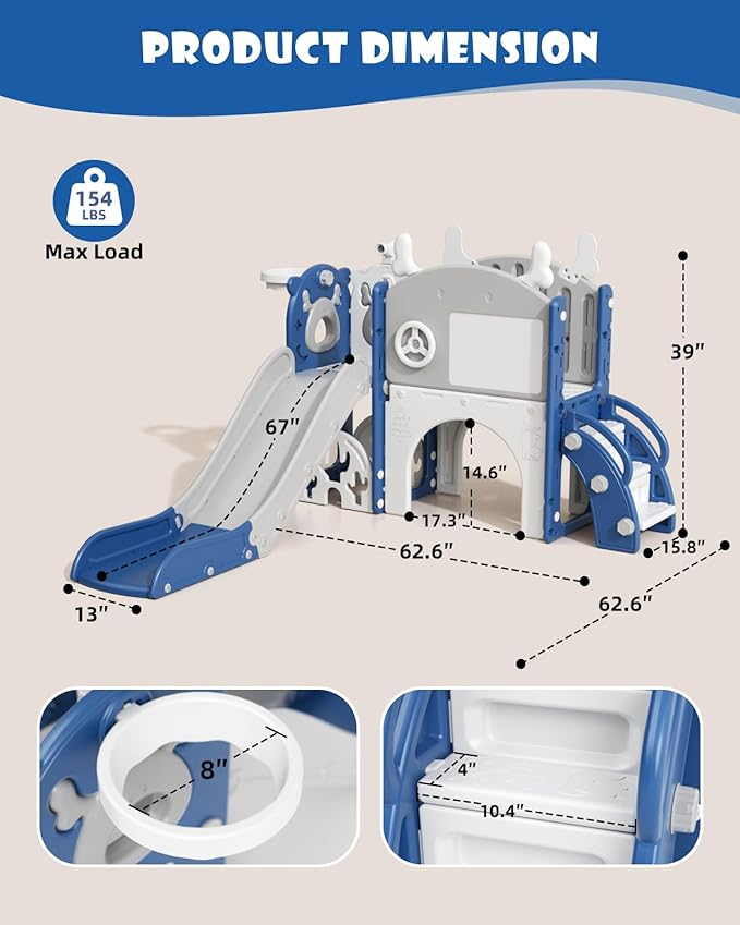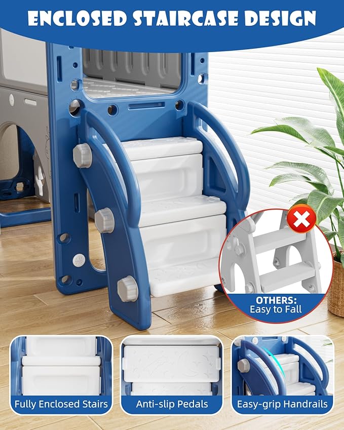 • Safe Design: This baby slide set features raised handrails, a widened waiting area, non-slip pedals and scientific step spacings. A widened and extended slide is designed with three distinct sections: acceleration zone, deceleration zone, and buffer zone, ensuring an exciting yet safe sliding experience for your child.