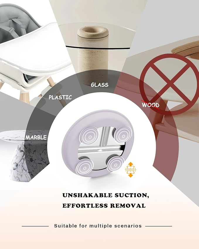 • Innovative Design: This baby plate with suction combines durable 304 stainless steel with a silicone suction base featuring 4 strong, non-slip suction cups. Keeps plates in place on highchair trays or tables, helping your child self-feed and minimizing mealtime mess. Say goodbye to flipped toddler plates and hello to free hands for mom!