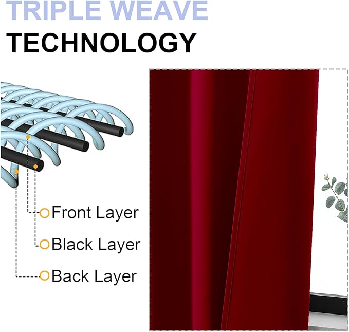 • High-Quality Materials: Crafted from high-quality polyester fiber, guarantee both stiffness and drape. This soft yet durable light-blocking fabric boasts a three-layer weave, with a middle layer of black yarn acting as an effective light-blocking panel, effectively blocking light while providing privacy. The identical colors on both sides further enhance its aesthetic appeal, adding a touch of elegance to your home.