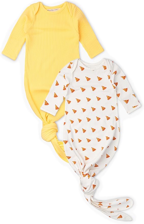 • Introducing our 2-pack of the ultra-comfy knot it gown, so cozy that our 6-month-old model couldn't resist dozing off! The best part: an adjustable tie for easy diaper changes!