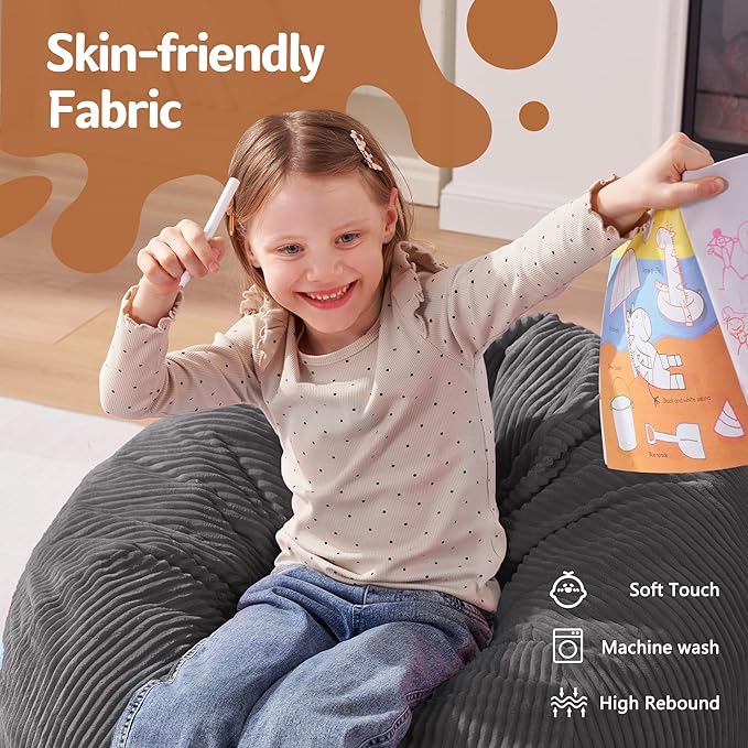 • Removable and Washable Cover: The cover of bean bag chair is removable and washable for further care. It is made of breathable premium dutch velvet with fine texture, soft and skin-friendly from touching. It is also anti-pilling and not easy to fade. You can easily put the beanbag cover into washer to clean it like new. Moreover its double stitched seams and hidden double-pull zipper ensures for super durability & strength.
