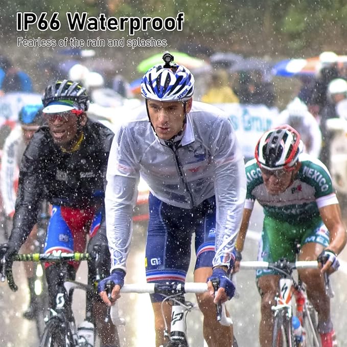 • IP66 Waterproof Performance: The IP66 waterproof action camera withstands rain and splashes. No matter the weather, focus on rides, freely capture highlights like passing through puddles or riding in light rain, keeping memories intact.