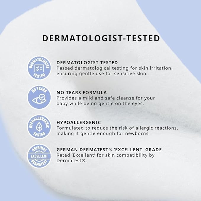 • MADE WITH JUST 4 CLEAN INGREDIENTS – Free from parabens, sulfates, artificial dyes, and harsh chemicals. Crafted with plant-based ingredients to support your baby’s sensitive skin barrier.