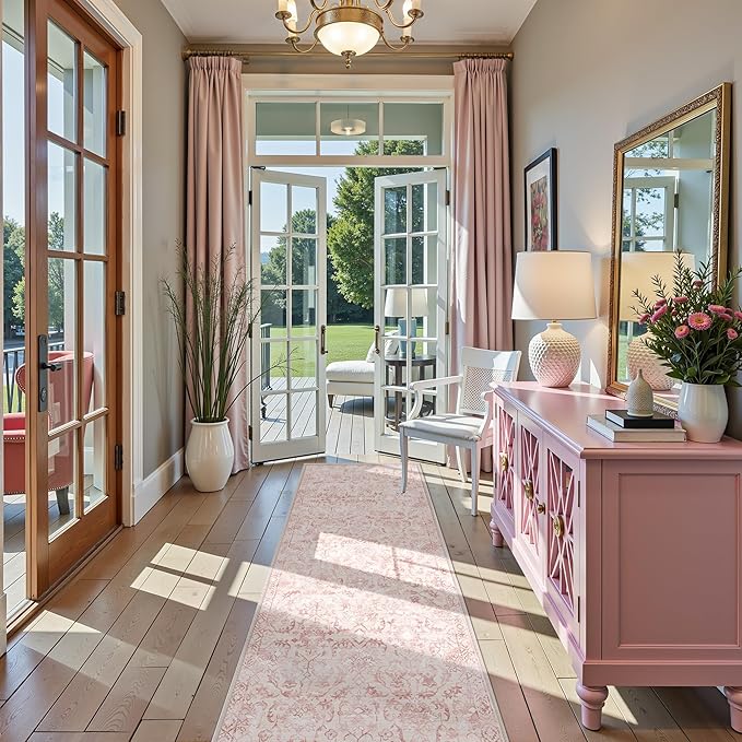 • Deerly Vintage 3x10 Runner Rug: These Hallway runner rug feature trendy faded style and unique neutral distressed floral pattern, vintage tones combines the pink and ivory color, creating a comfortable and warm family environment. 3x10 rug runner is suitable for indoor entrance, bedroom, kitchen, bathroom, etc.