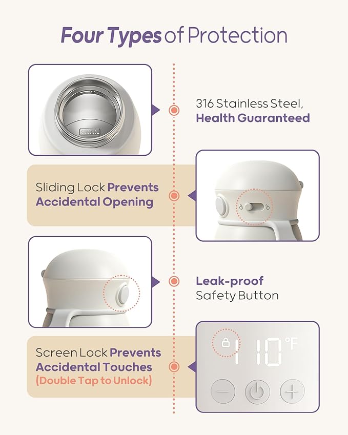 • Leak-Proof and Baby-Safe Design: This baby brew bottle warmer is designed with a secure, leak-proof lid and a child safety lock, preventing spills and misuse while providing peace of mind for parents.