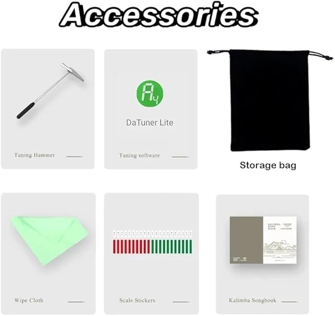 • COMPLETE SET: Includes a 21-key kalimba thumb piano, professional tuning hammer, study guide music book, and protective carrying bag for storage and transport