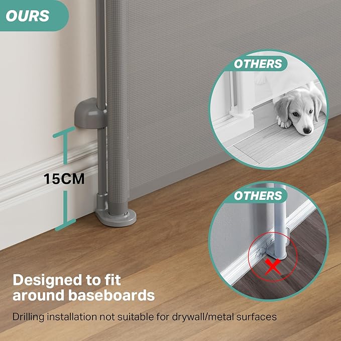 • Expandable Design with Two-Pack Option: Extending up to 55" wide and 34" tall, this retractable gate neatly rolls up when not in use, making it easy to convert rooms as needed. Available in a convenient two-pack, it provides added flexibility for covering wider areas or multiple entry points in your home
