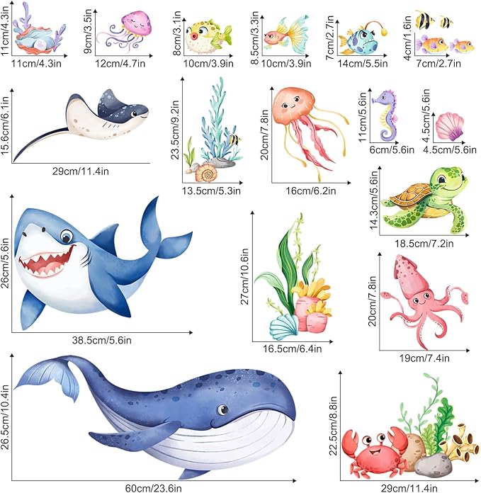 • 【Premium Quality Material】: Made from thick, durable vinyl, these marine life wall stickers are designed to last. They feature high-definition printing that ensures bright, vivid colors that won't fade over time.
