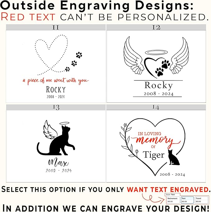 • Customized: create your own memory box by choosing one of the designs we offer and adding a name and date. We’ll use the font style showcased in the photos. The inside lid can also be engraved with your text in the different fonts we offer