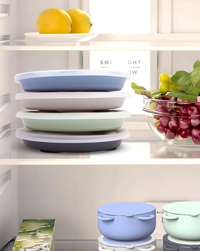 • Mess-Free Storage for Busy Parents: The soft silicone lid keeps food covered for travel or fridge storage. It's not leakproof, but it keeps smells contained and lets you stack meals easily—great for families with more than one hungry kid. Optimized wall height guides utensils to mouths successfully, boosting independent eating confidence with our stainless steel plates