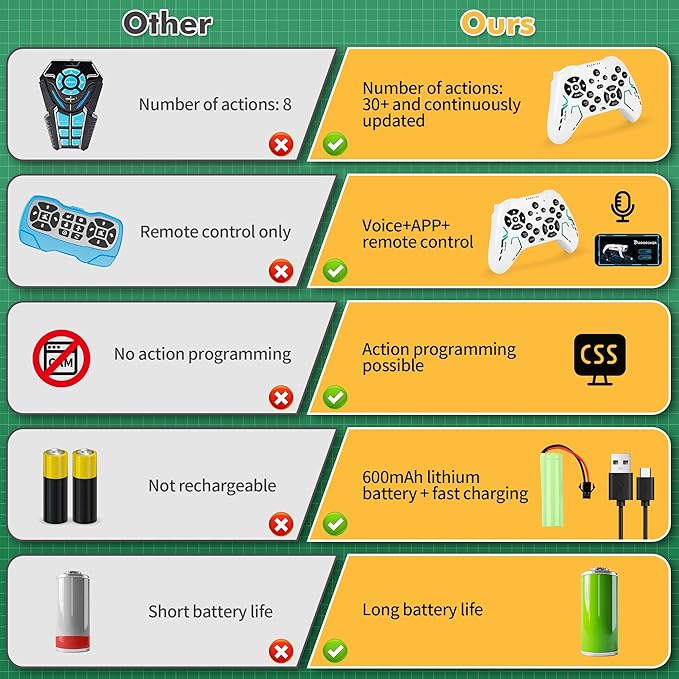• 🚀Beyond Basic Robot Toys: Unlike cheap $30 gadgets, this robot dog features precision motors, 600mAh battery, and free app updates with new actions—grows with your child for years of smart play!