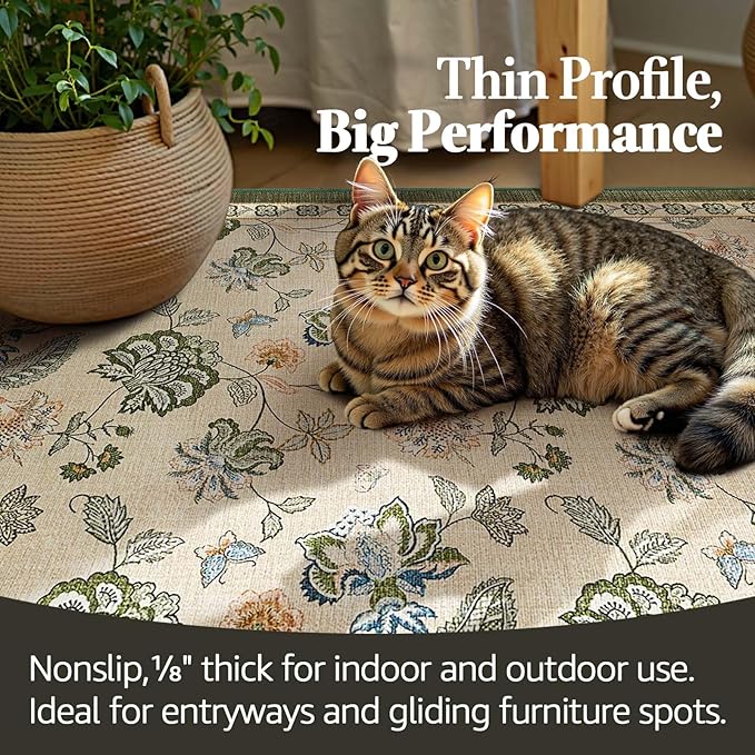 • Slim, Secure & Floor-Friendly: At just 1/8″ thick, this lightweight rug slips easily under doors and furniture while its built-in non-slip backing keeps it firmly in place. Perfect for high-traffic areas, it offers style and stability without bulk.
