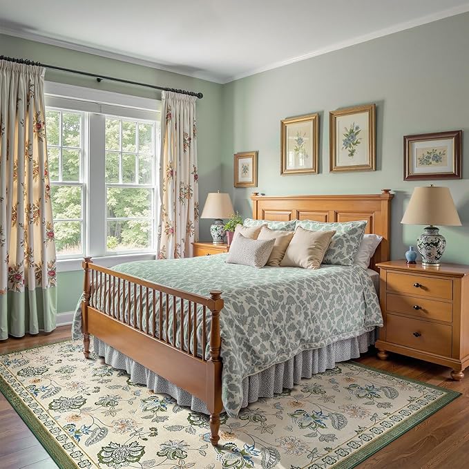 • Floral Vintage Charm: Layers of lush botanical florals framed by an ornate border bring timeless American vintage elegance to your home. The soft cream base and warm floral tones create a welcoming mood—like stepping into a sunlit garden filled with stories.