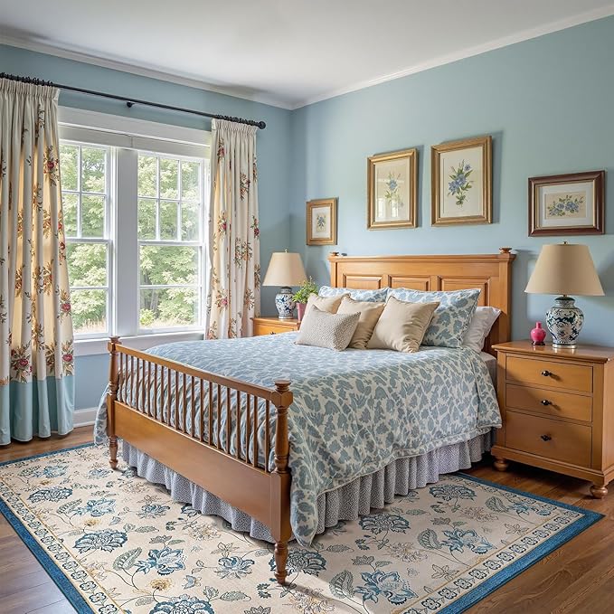 • Floral Vintage Charm: Layers of lush botanical florals framed by an ornate border bring timeless American vintage elegance to your home. The soft cream base and warm floral tones create a welcoming mood—like stepping into a sunlit garden filled with stories.